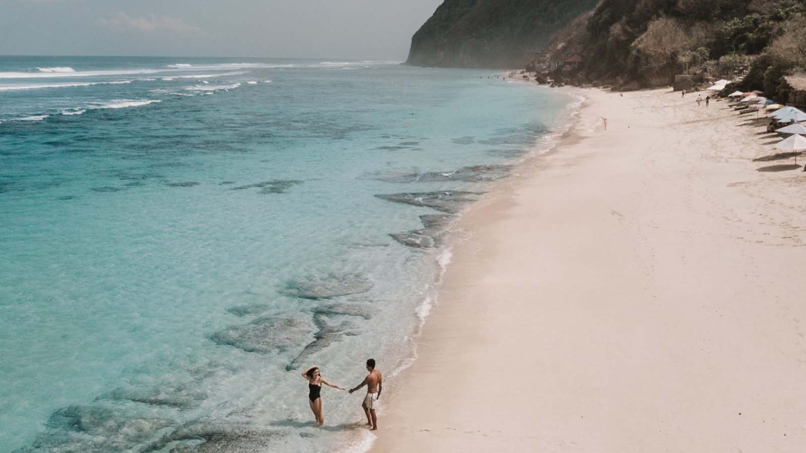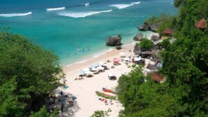 An iconic beach with soft white sand and crystal clear blue waters surrounded by limestone cliffs. Famous as the filming location for the film "Eat, Pray, Love," this beach is a favorite spot for swimming, sunbathing, or simply relaxing in the tranquil tropical setting.